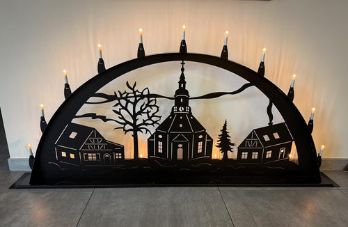 Unsere Schwibbögen gibt es ab diesem Jahr in verschiedenen Motiven und Größen. Eine passende Lichterkett ist inklusive!